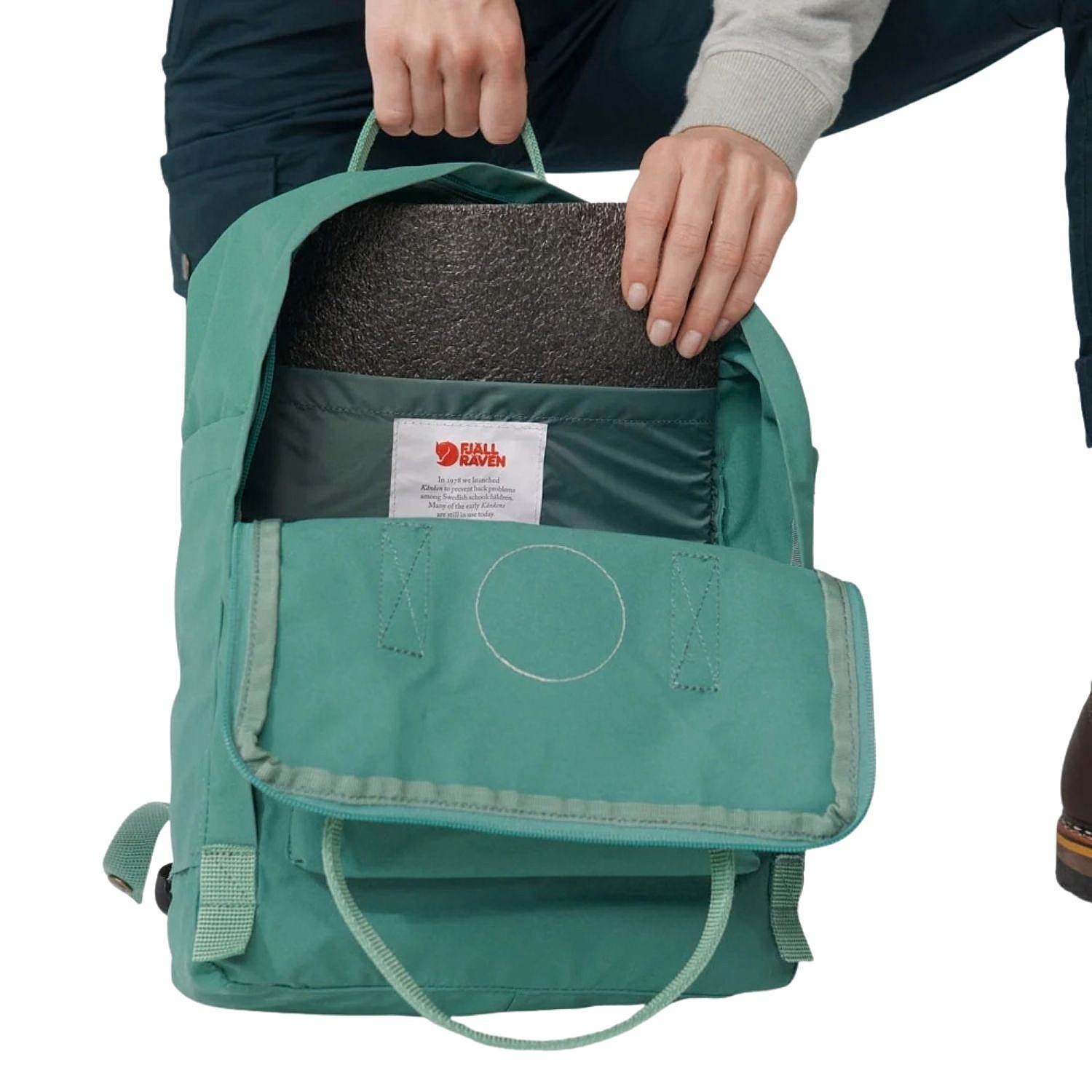 - w zestawie znajduje się również piankowa podkładka PE, która jest schowana w wewnętrznej tylnej kieszeni, gdzie zapobiega uciskaniu pleców przez zawartość plecaka – i jest zawsze pod ręką, gdy potrzebujesz zrobić sobie przerwę i usiąść, gdziekolwiek jesteś
