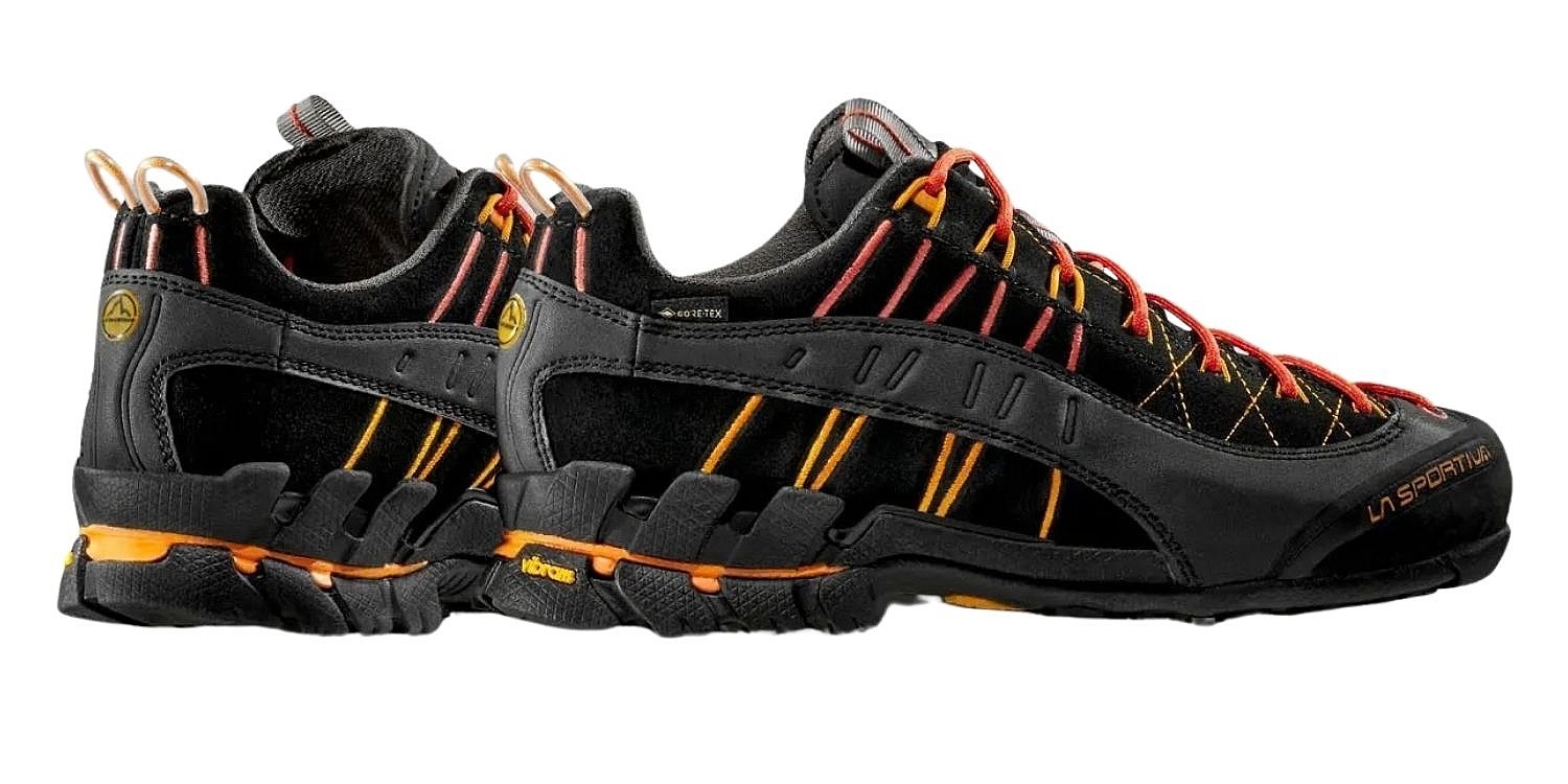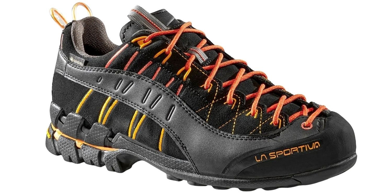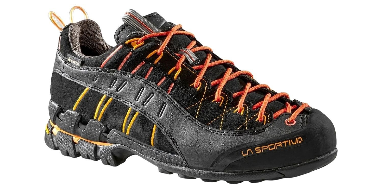 Męskie buty z goretexu La Sportiva Hyper GTX – buty z super przyczepną podeszwą i przedłużonym sznurowaniem, na których naprawdę możesz polegać podczas chodzenia po kamienistym terenie (Via Ferata, podejście pod tereny wspinaczkowe). Skórzana cholewka gwarantuje wysoką odporność na ścieranie i przenikanie wilgoci z zewnątrz. Odporność na wodę jest dodatkowo zwiększona dzięki zastosowaniu membrany GORE-TEX®, która jednocześnie zapewnia optymalny komfort termiczny wewnątrz buta. Dzięki przemyślanemu, ergonomicznemu krojowi buty Hyper GTX doskonale dopasowują się do stopy.