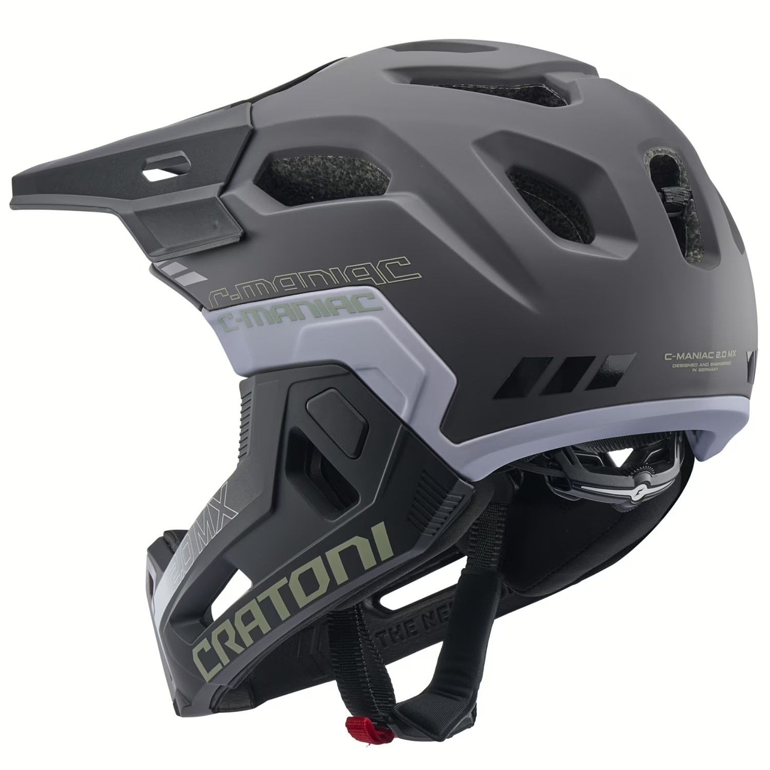 Kask integralny Cratoni C-Maniac 2.0 MX – z odpinanym ochrannikiem podbródka, odpowiedni do enduro, trailu, bikeparku i BMX. Oferuje niezwykle lekką konstrukcję, wysoki komfort, doskonałą wentylację i maksymalną ochronę dzięki odpinanemu ochranikowi podbródka. Kask jest idealnym wyborem dla tych, którzy chcą maksymalnego bezpieczeństwa podczas jazdy z dużą prędkością, a jednocześnie cenią sobie nowoczesny design i dopracowane detale.