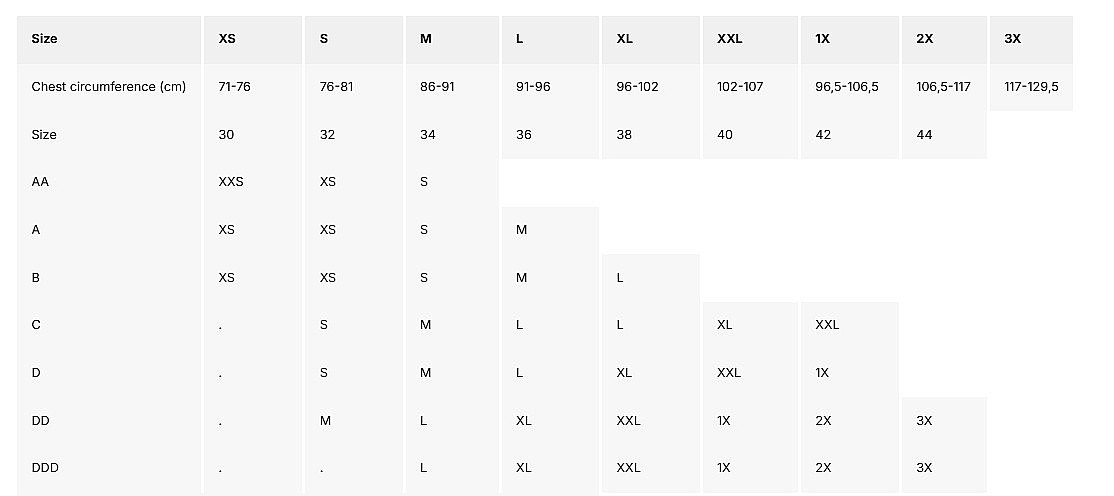- elastyczny dół zapewnia, że biustonosz dobrze trzyma się na miejscu bez nieprzyjemnego wrzynania się