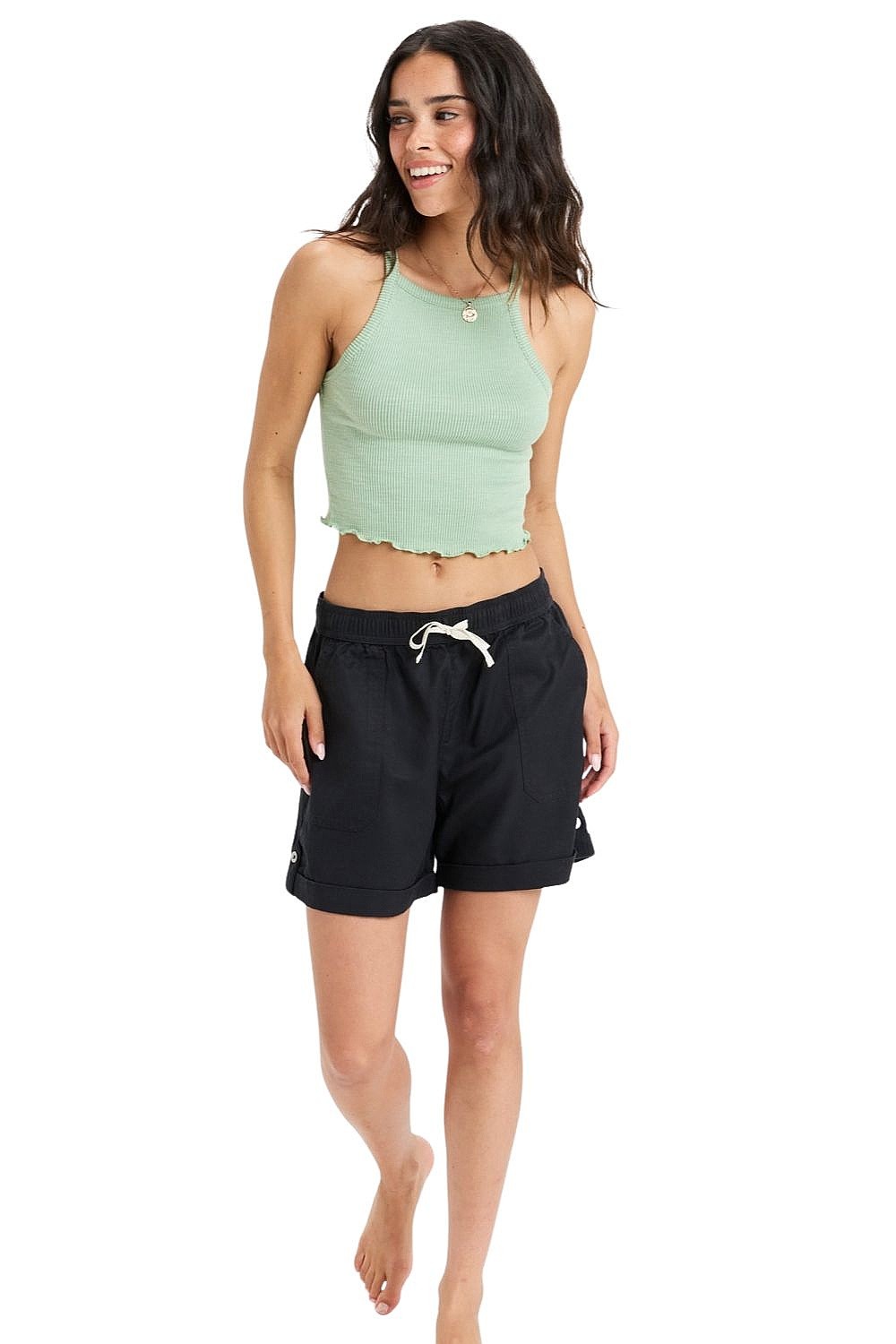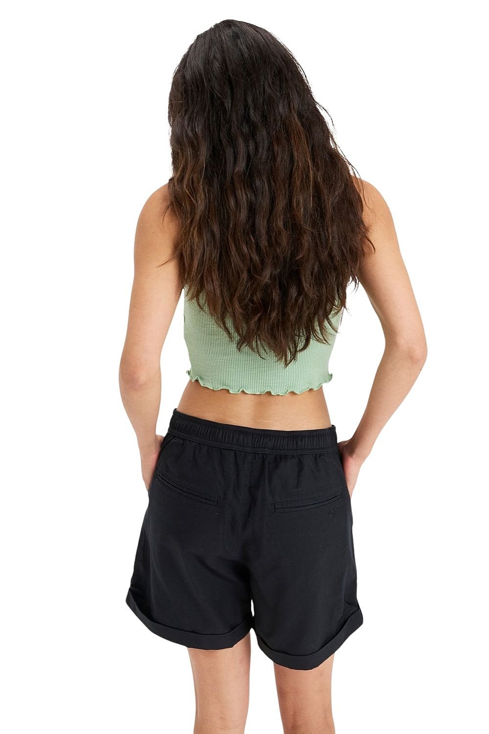 Szorty damskie Roxy Sweetest Day * materiał: 55% lyocell, 45% bawełna [210 g/m2] * elastyczny pas z sznurkiem * dwie kieszenie z przodu i z tyłu * podwinięte nogawki * szorty z płótna