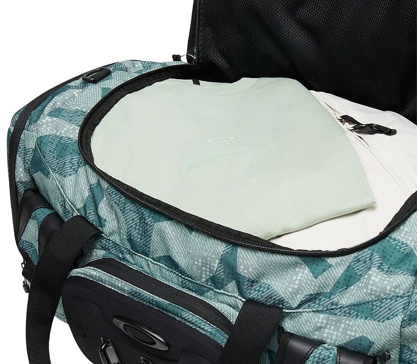 Torba podróżna Oakley Urban Ruck RC Duffle – łączy w sobie wytrzymałość, funkcjonalność i ekologiczne podejście. Jest wykonana z materiałów pochodzących z recyklingu i pokryta wodoodporną powłoką, dzięki czemu nadaje się do codziennego użytku, podróży i uprawiania sportu.