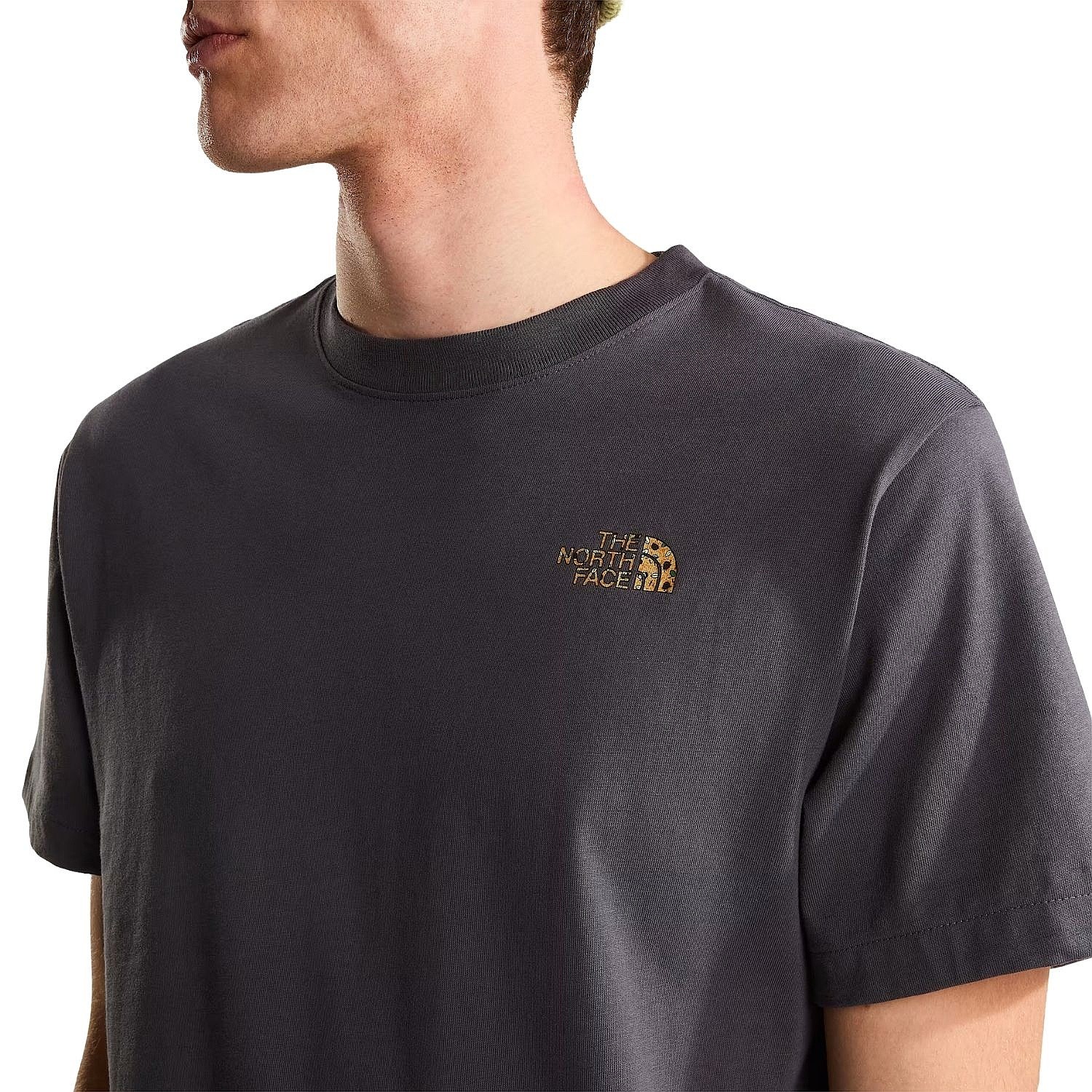 Męska koszulka The North Face TNF Snack Relaxed – w tej koszulce TNF zawsze będziesz wyglądać jak swobodny odkrywca, ponieważ ma ona nadruk na bazie wody z przodu i z tyłu oraz zapewnia całkowity komfort dzięki bawełnie.